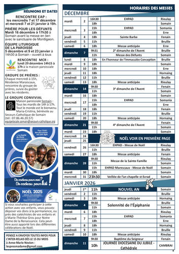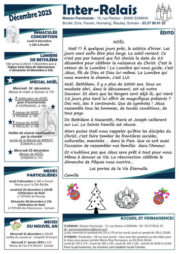 Article publié par response.text()) .then(text => { html = text showLoading = false; })" class="flex justify-center animate-grow-on-hover--small">Mme karinne vankemmel • Publié le Vendredi 28 novembre 2025 - 16h03 • 12 visites inter relais Decembre 2025 Télécharger 1 Mo Télécharger