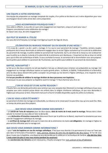 – une déclaration d’intention manuscrite (document fourni par le prêtre ou le diacre), exprimant la conscience que vous avez de l’engagement catholique du mariage ce qui correspond au "projet de vie".
